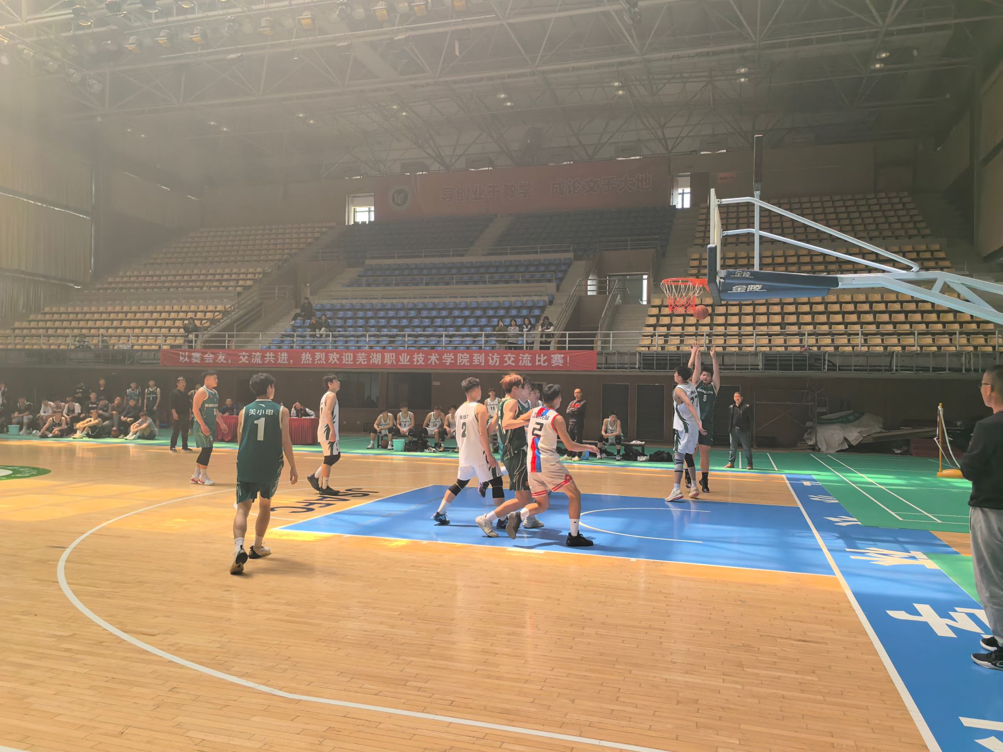 为备战即将在浙江经济职业技术学院举办的中国第27届中国大学生篮球联赛(东南赛区)比赛,4月2日,由体育教学部带队,校男、女篮球队分别赴江苏农林职业技术学院和江苏开放大学开展交流活动。
